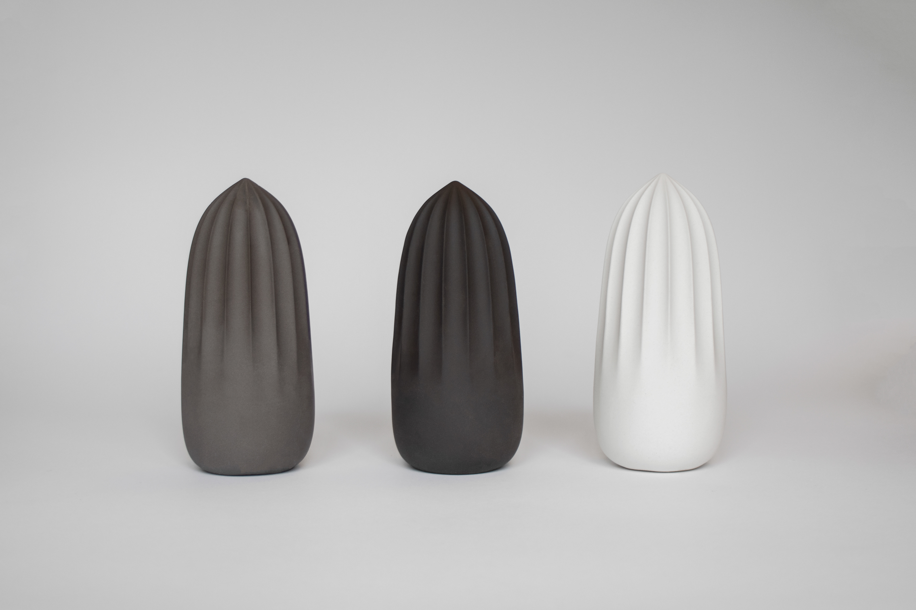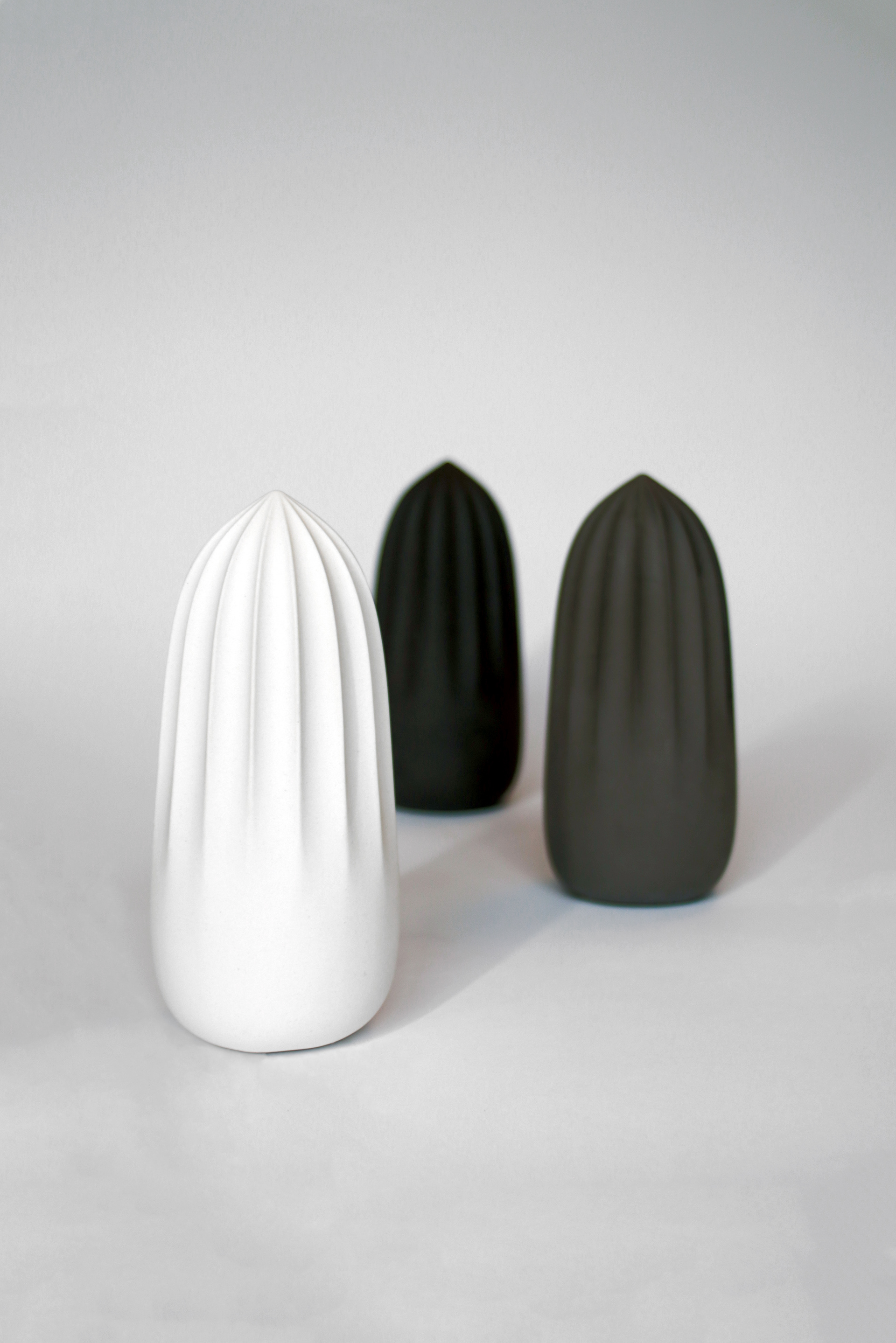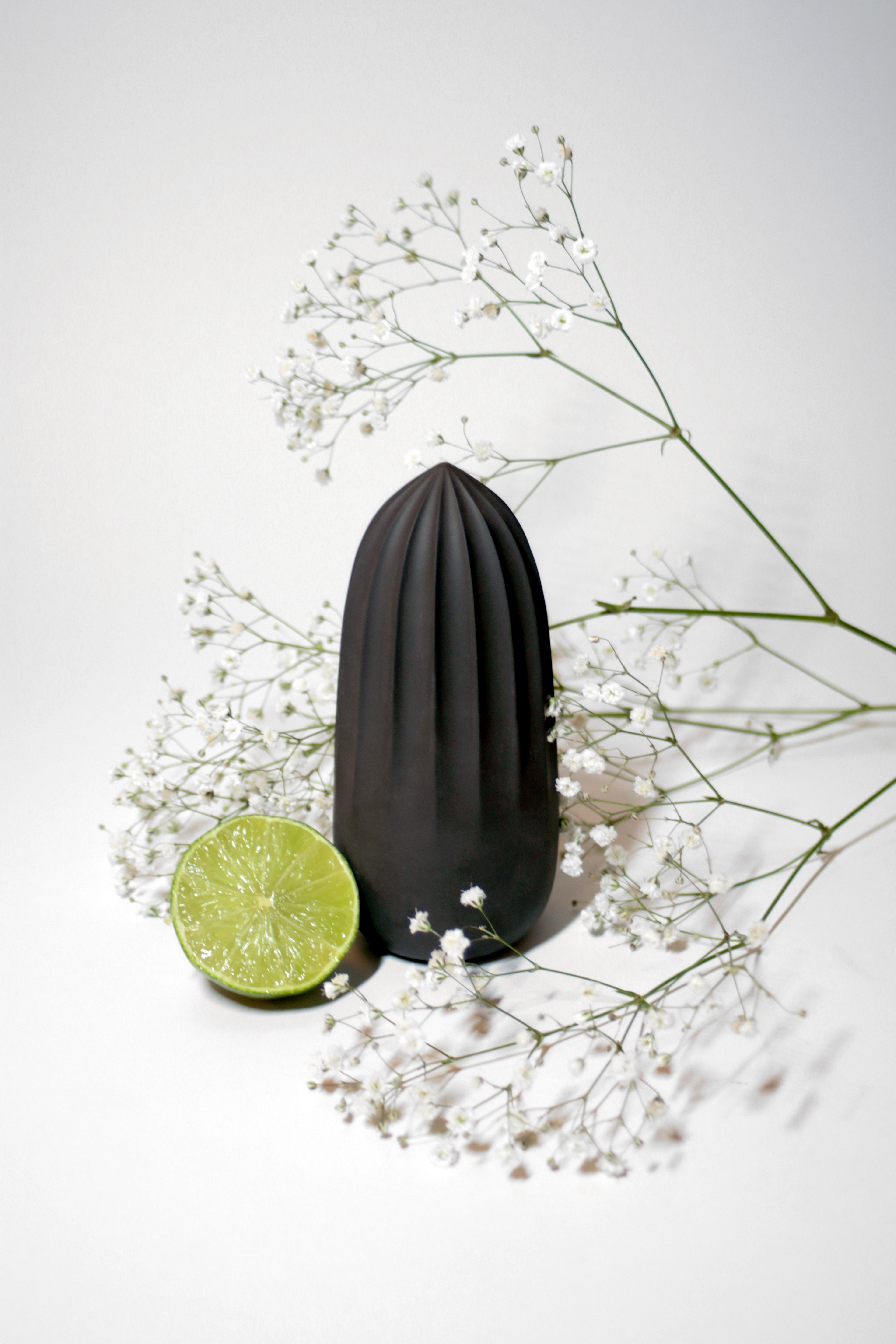 It is made of matte colored porcelain and comes in three colors. Relief decorations result from the function of the object, which at the same time performs a functional and decorative function. The geometric shape of the juicers does not impose style gaining the versatility of the design. Juicers are very easy to use and clean. After squeezing the juice directly into the dish, simply rinse it under running water and allow it to dry.